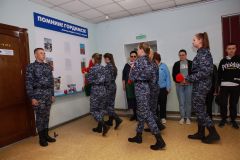 Директор техникума Гололобова Л.С. зачитала приказ о том, чтобы считать мемориальную доску Почетной вахтой Поста N 1 с несением Почетного караула по памятным датам.
